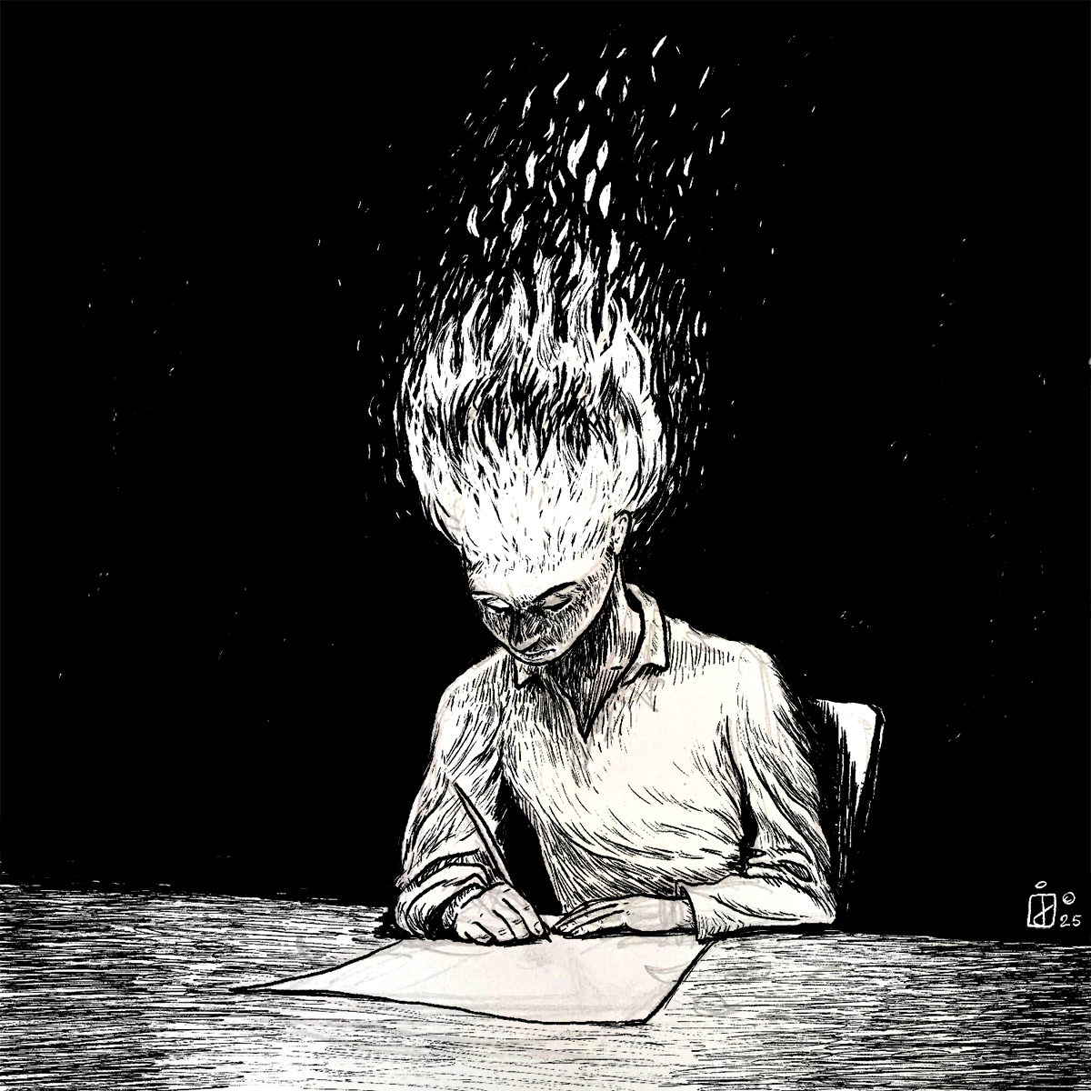 Tusche als Medium des Moments – schnell, unbarmherzig, präzise. Jede Linie ist Entscheidung. Sie erlaubt keine Korrektur und bietet dadurch maximale Präsenz.